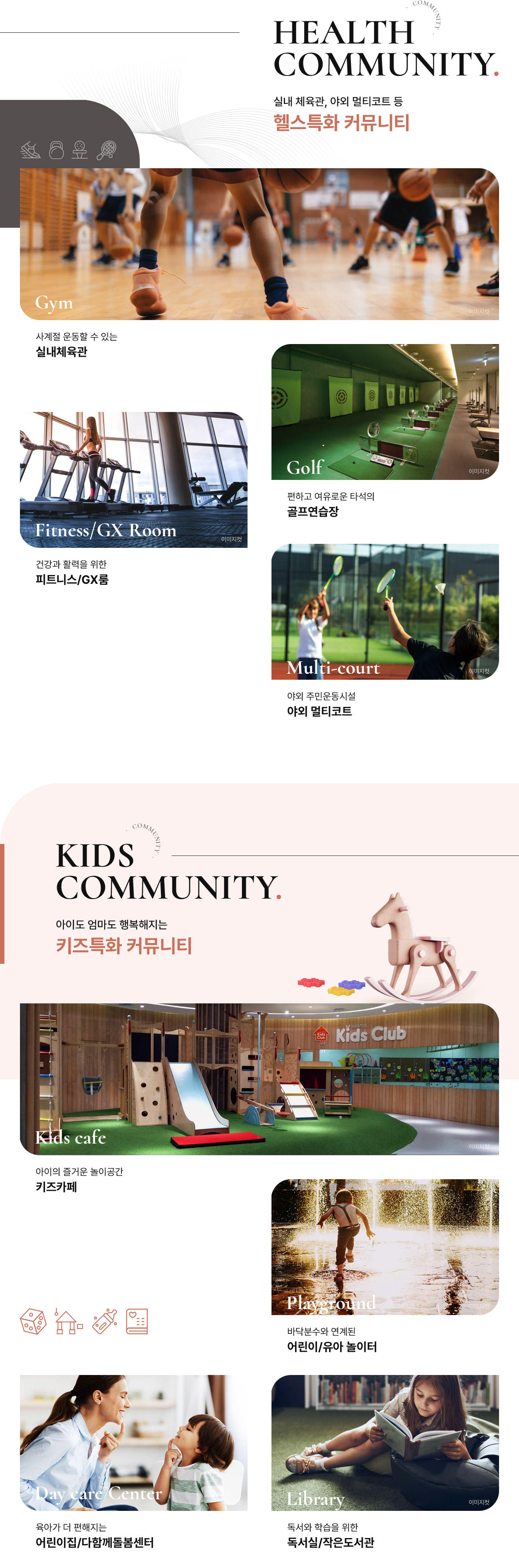 - 상기 커뮤니티 관련 내용은 소비자의 이해를 돕기위해 제작된 것으로 실제와 다를 수 있으며, 시설의 구성, 명칭은 사용상의 편의를 위한 것으로 추후 변경될 수 있습니다.